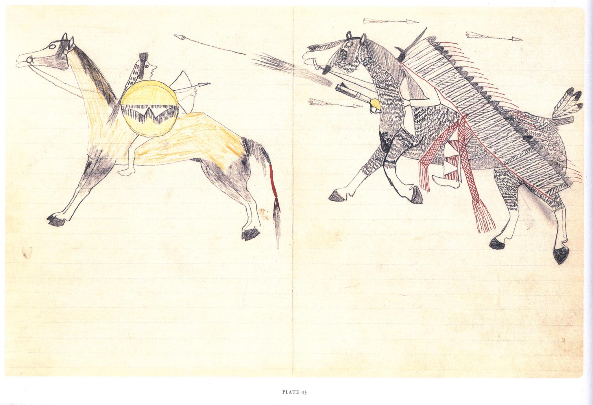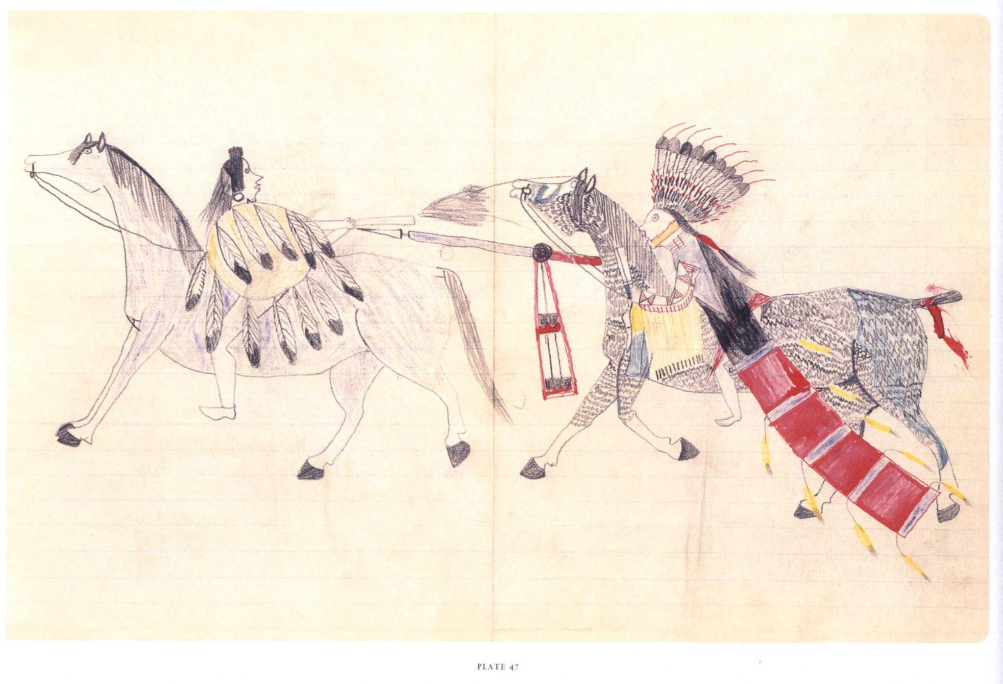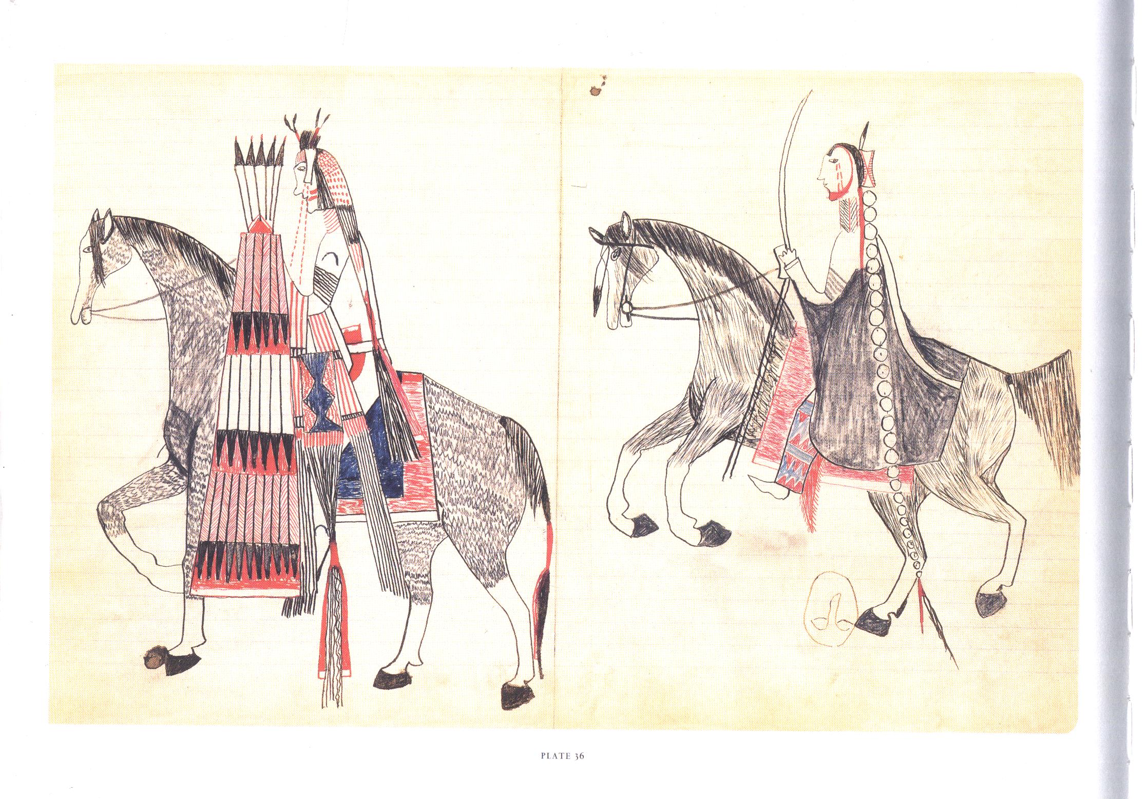 horses. In plate 36 (left), a Crow warrior seems to be riding the